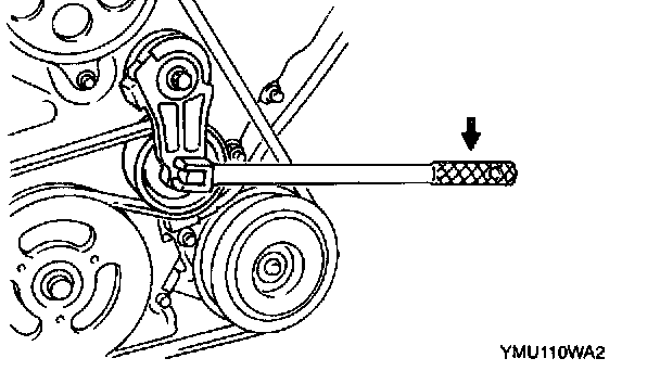2. Set a handle (commercially available on the market) on the center of the tensioner pulley as shown.