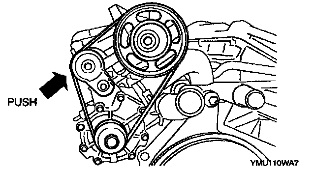 2. Rotate the belt tensioner clockwise by hand to release the drive belt tension and remove the belt.