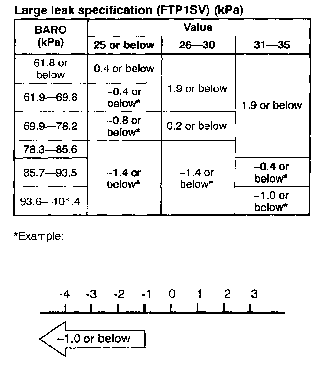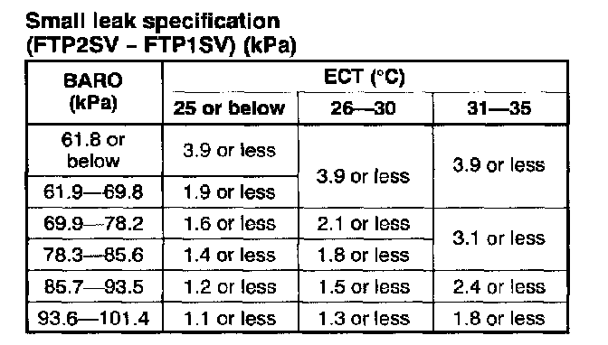 19. Verify that (FTP2SV-FTP1SV) value is within the specification in the table according to the BARO and ECT PID values recorded in step 6.