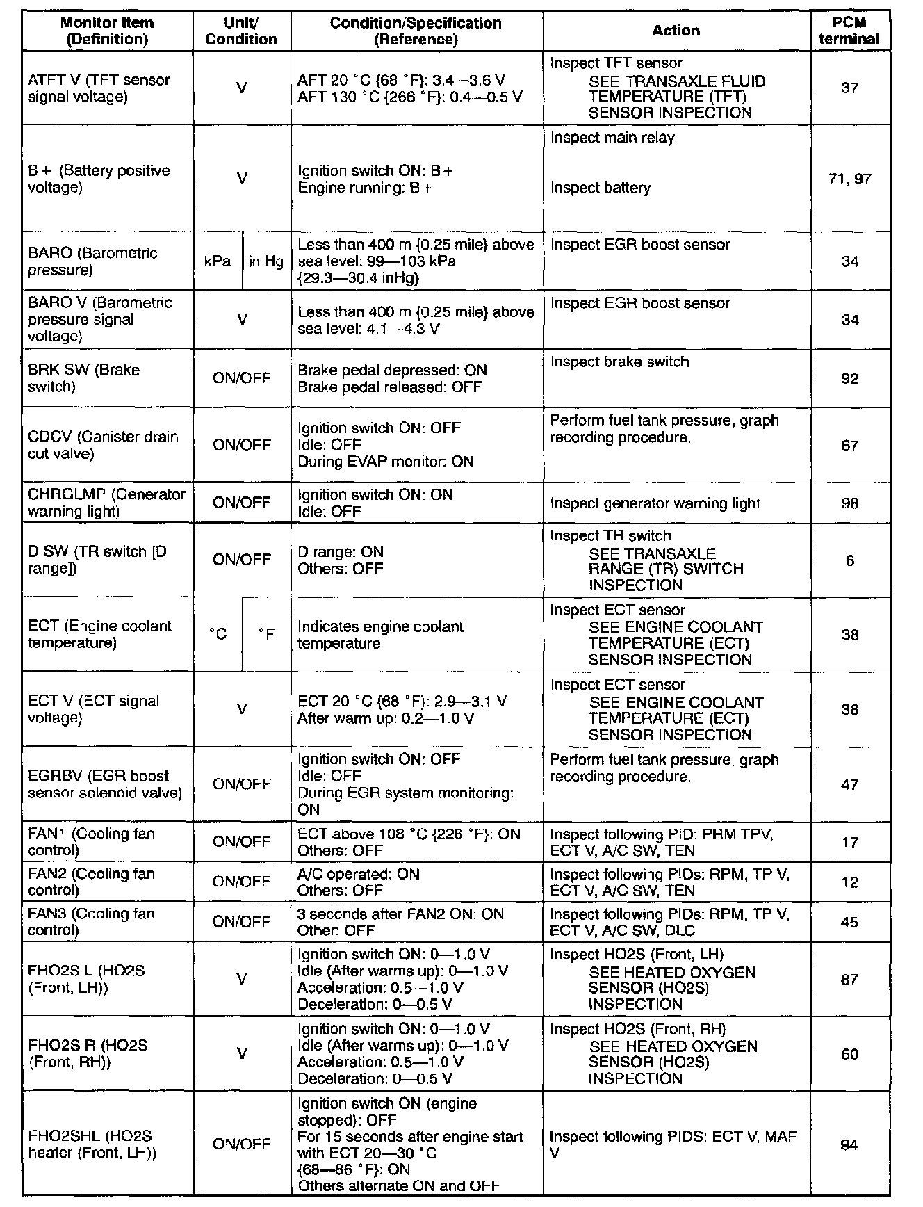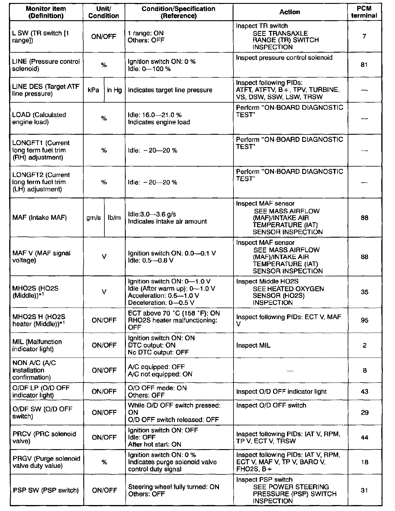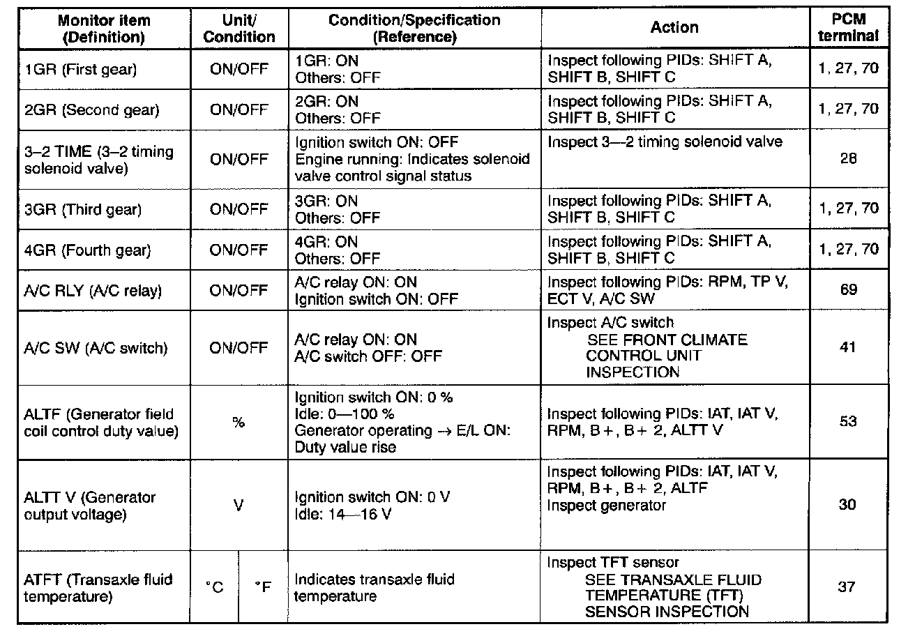 PID/DATA Monitor Table (Reference) (Part 5 Of 6):