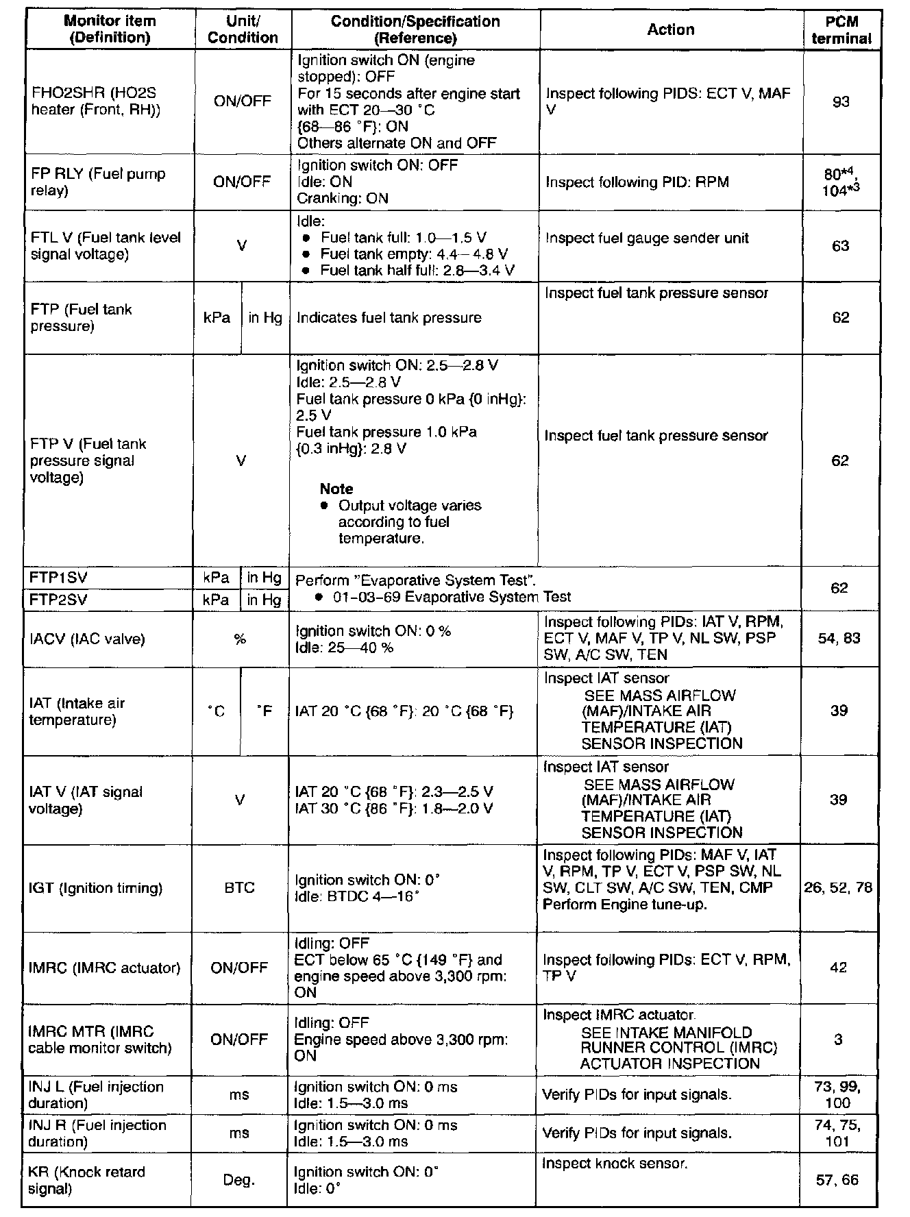PID/DATA Monitor Table (Reference) (Part 4 Of 6):