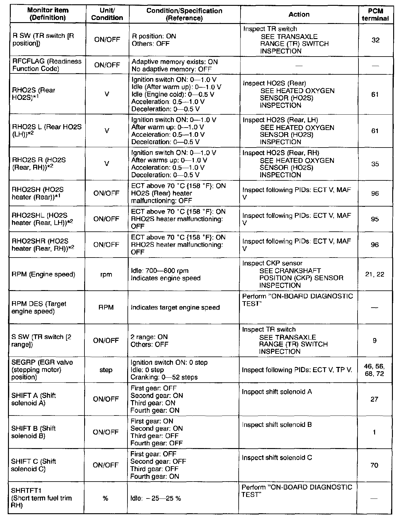 PID/DATA Monitor Table (Reference) (Part 2 Of 6):