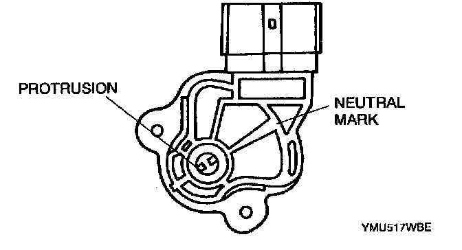 12. Turn the TR switch so that the neutral mark is in line with the flat, straight surfaces on either side of the manual shaft.