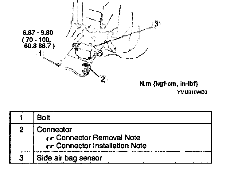NOTE: When a new side air bag sensor has been installed, perform the air bag module deployment authorization procedure. (Refer to AIR BAG MODULE DEPLOYMENT AUTHORIZATION PROCEDURE.)