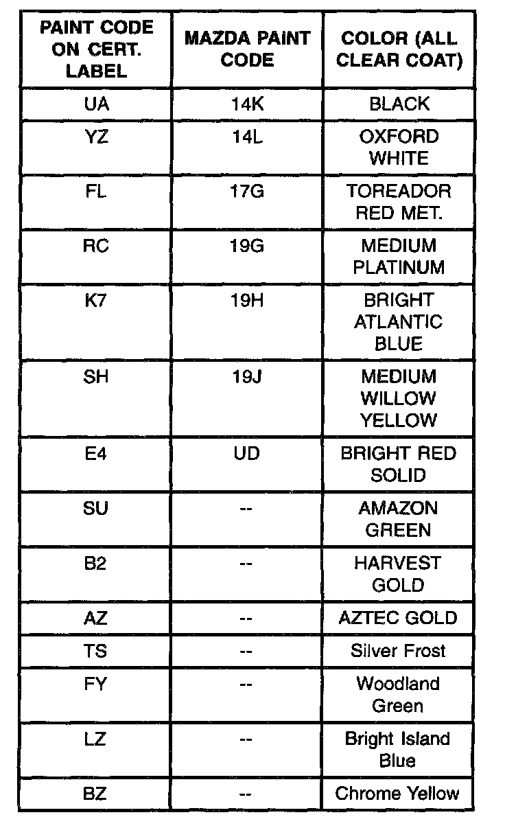 Interior trim codes are listed as a two-part code. The first code listed identifies the trim level. The second code listed identifies the interior trim color.