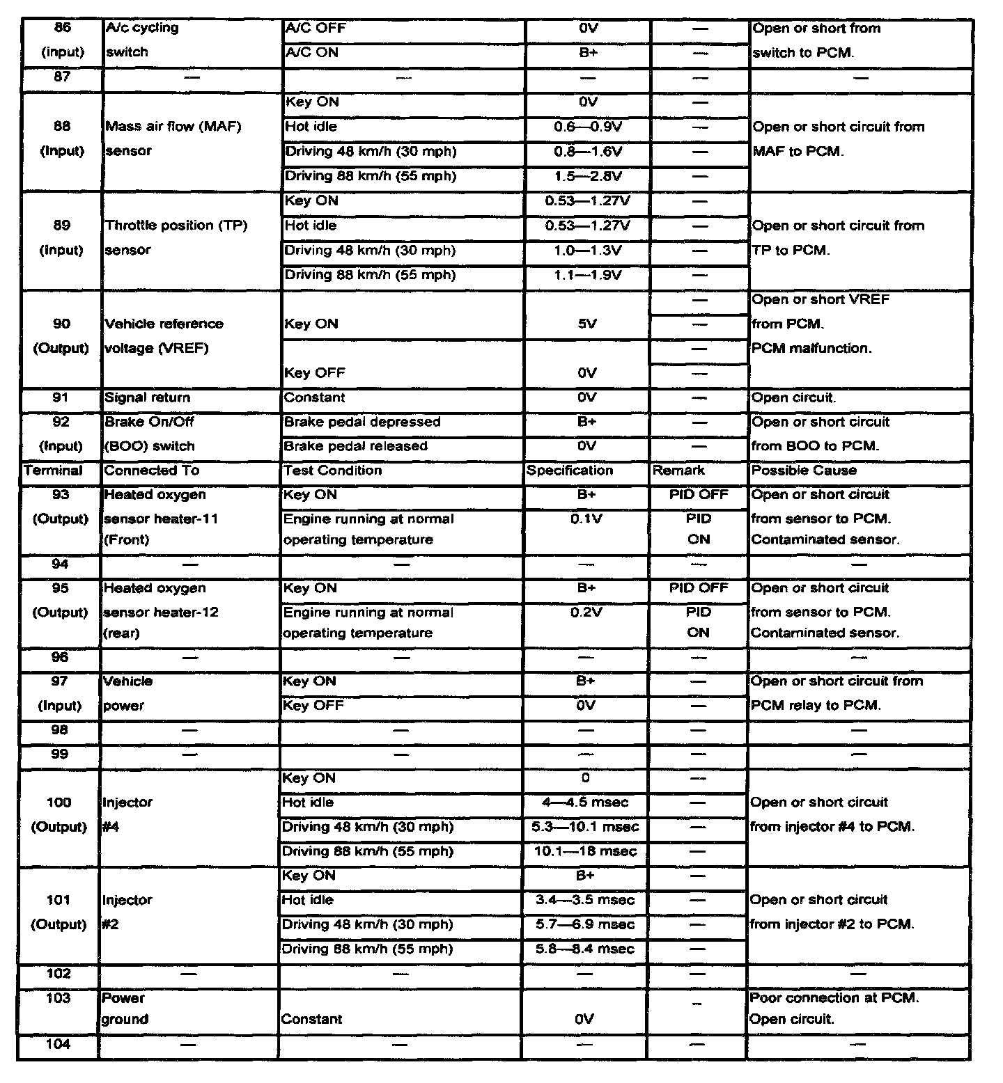 Terminals 86 - 104: