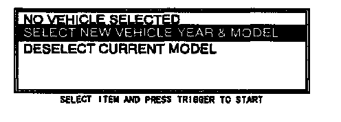 3. Move the cursor to SELECT NEW VEHICLE YEAR & MODEL. Press the trigger key to enter this selection.