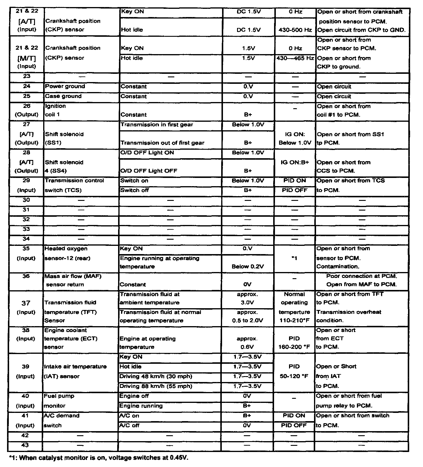 *1: When catalyst monitor is on, voltage switches at 0.45 V