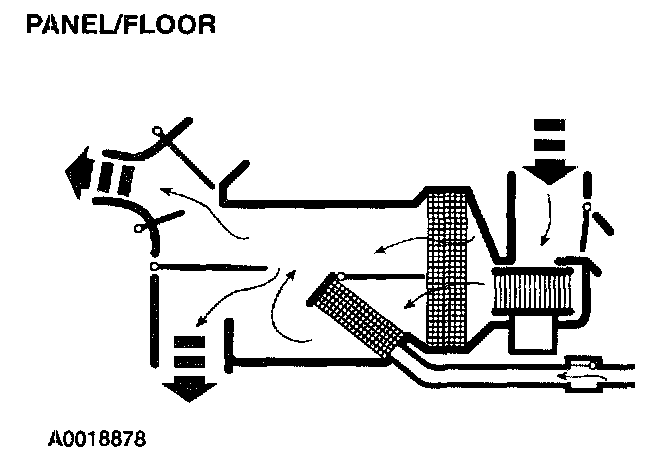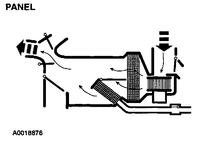 - The footwell blend door is in the full vacuum position, and the panel airflow door is in the full vacuum position allowing airflow to blend between the panel vents and the footwell ducts.