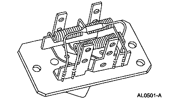 The four-speed operation of the blower motor is achieved through the blower motor switch resistor and contains a thermal limiter which is used as a temperature protecting fuse. The assembly is located on the passenger-side on the evaporator core housing behind the glove compartment.