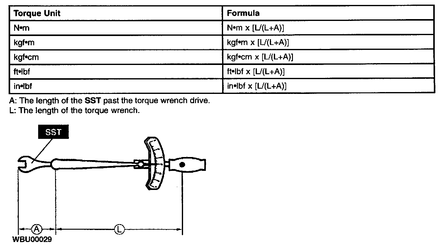 - When using a torque wrench-SST combination, the written torque must be recalculated due to the extra length that the SST adds to the torque wrench. Recalculate the torque by using the following formulas. Choose the formula that applies to you.