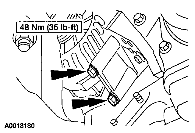 7. Remove the generator mounting bracket bolts and remove the bracket.