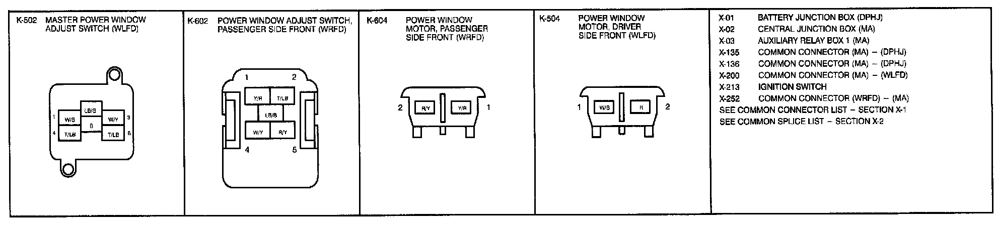 K-1 - Power Windows Connectors: