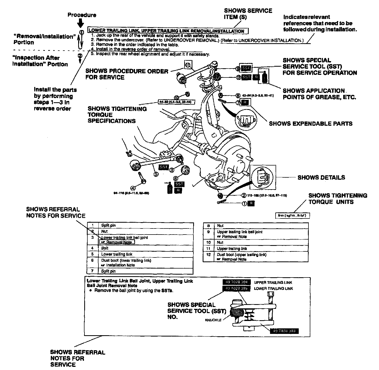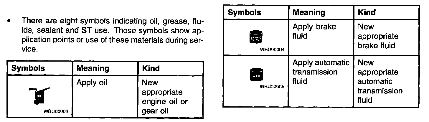 2. Expendable parts, tightening torques and symbols for oil, grease, and sealant are shown in the overview illustration. In addition, symbols indicating parts requiring the use of special service tools are also shown.