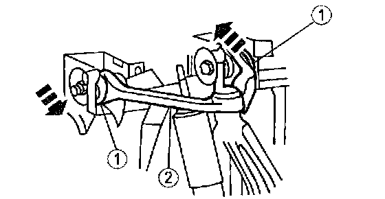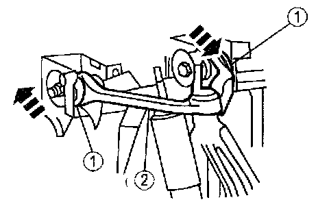 Note: A pry bar can be used between the front suspension arm bushing joint and the frame pocket to aid in moving the arm.