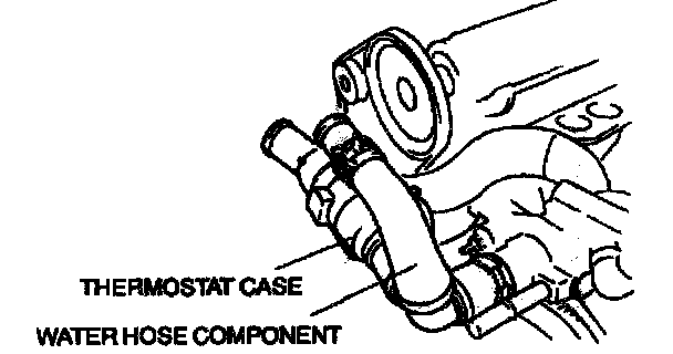 5. Remove the thermostat case and water hose component.