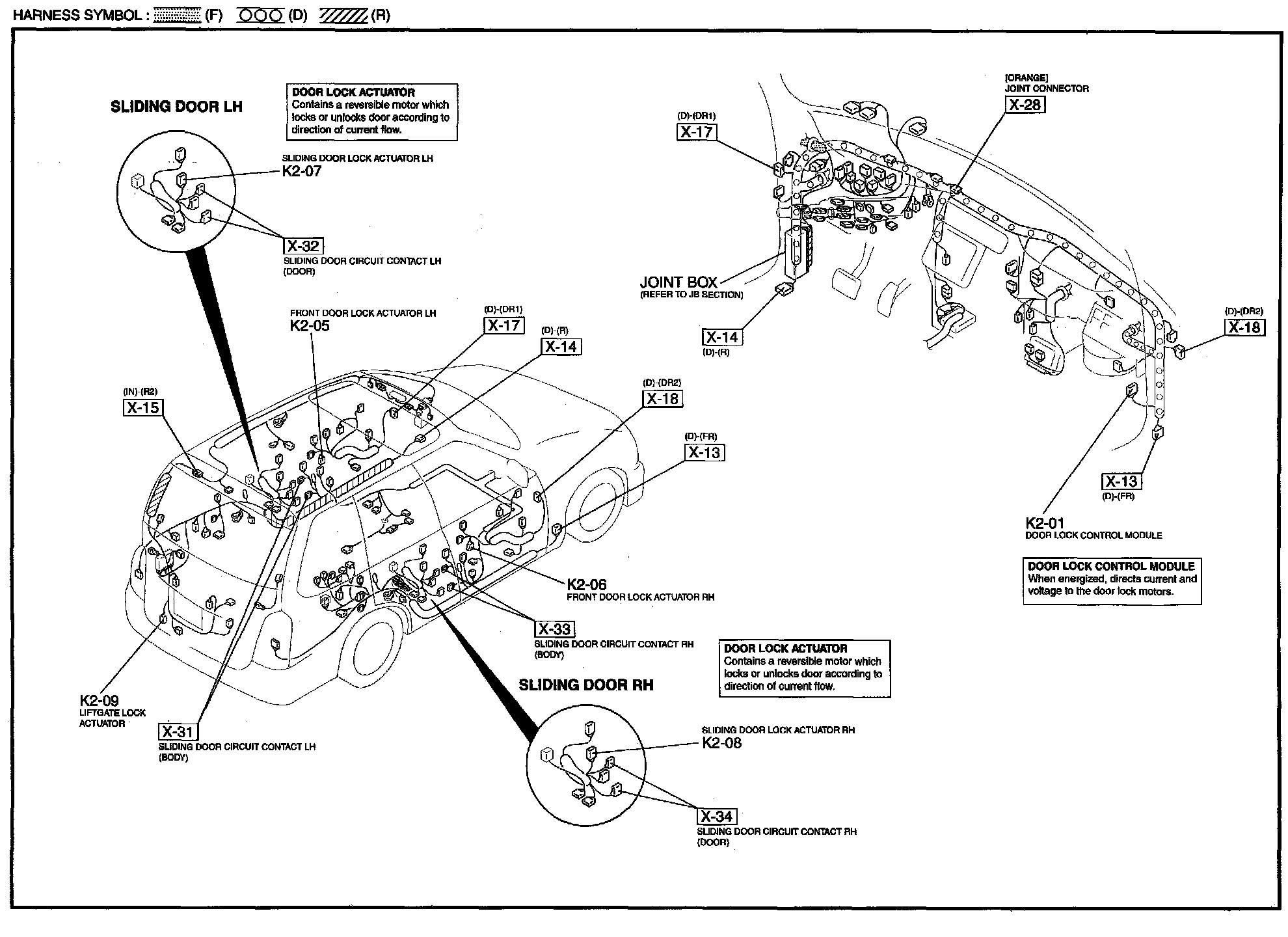 K-2b - Power Door Lock System Harness/Connector Symbols: