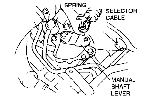 20. Verify that the selector lever range position and TR switch are aligned, then connect the selector cable.
