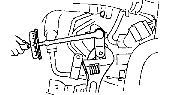 17. Set the adjustable wrench as shown to hold the manual shaft lever.