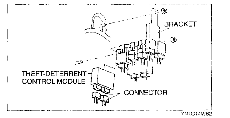 THEFT-DETERRENT CONTROL MODULE REMOVAL/INSTALLATIONNOTE: Because the lock section of the module is damaged easily, do not remove the module from the bracket unless replacement is necessary. Always perform an inspection of the theft-deterrent control module before removal.