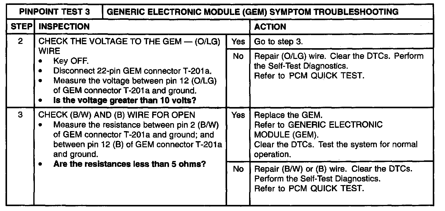 3: Generic Electronic Module (Gem) Symptom Troubleshooting