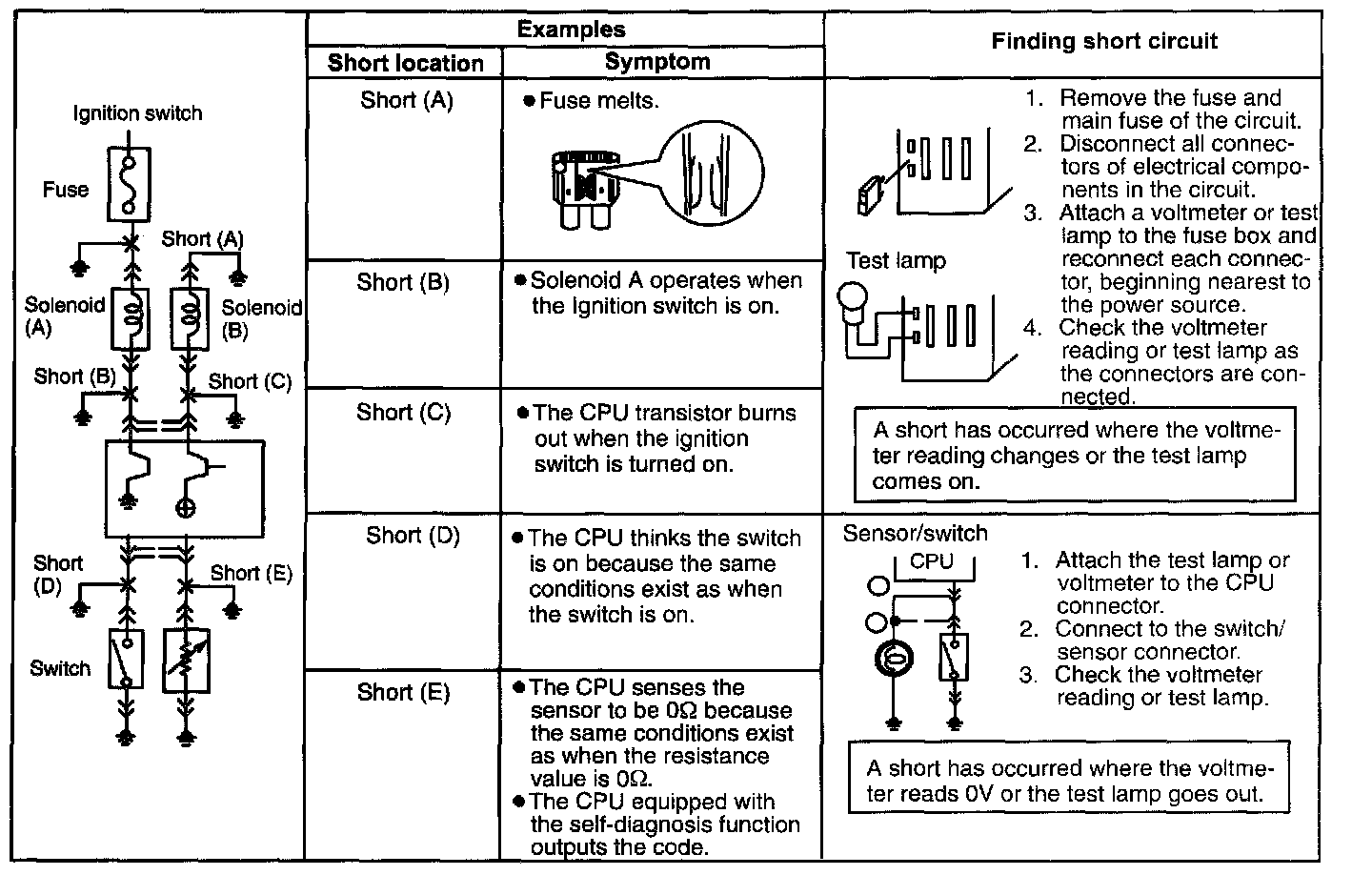 Shorts occur between the power (positive) and ground (negative) sides of a circuit. Therefore, finding a short circuit requires determining how the circuit is routed.