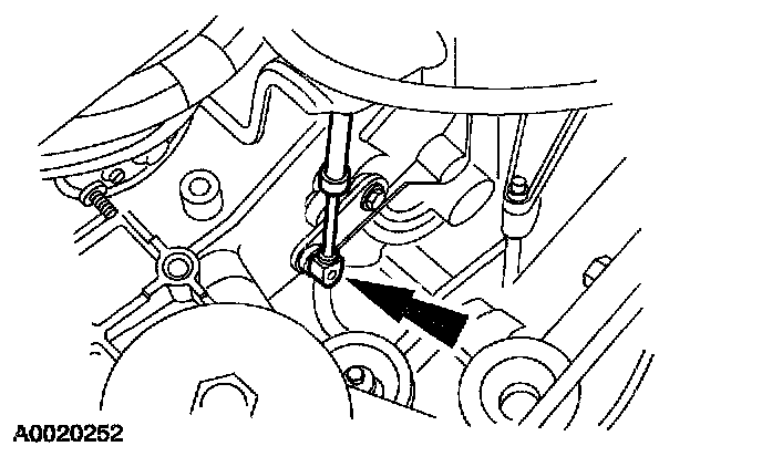 5. Loosen the nut on the ball stud for the manual valve detent lever actuating rod assembly.