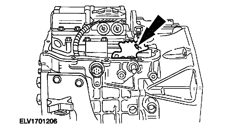 16. Depress the retaining tabs and push the solenoid valve body electrical connector down through the transaxle case.