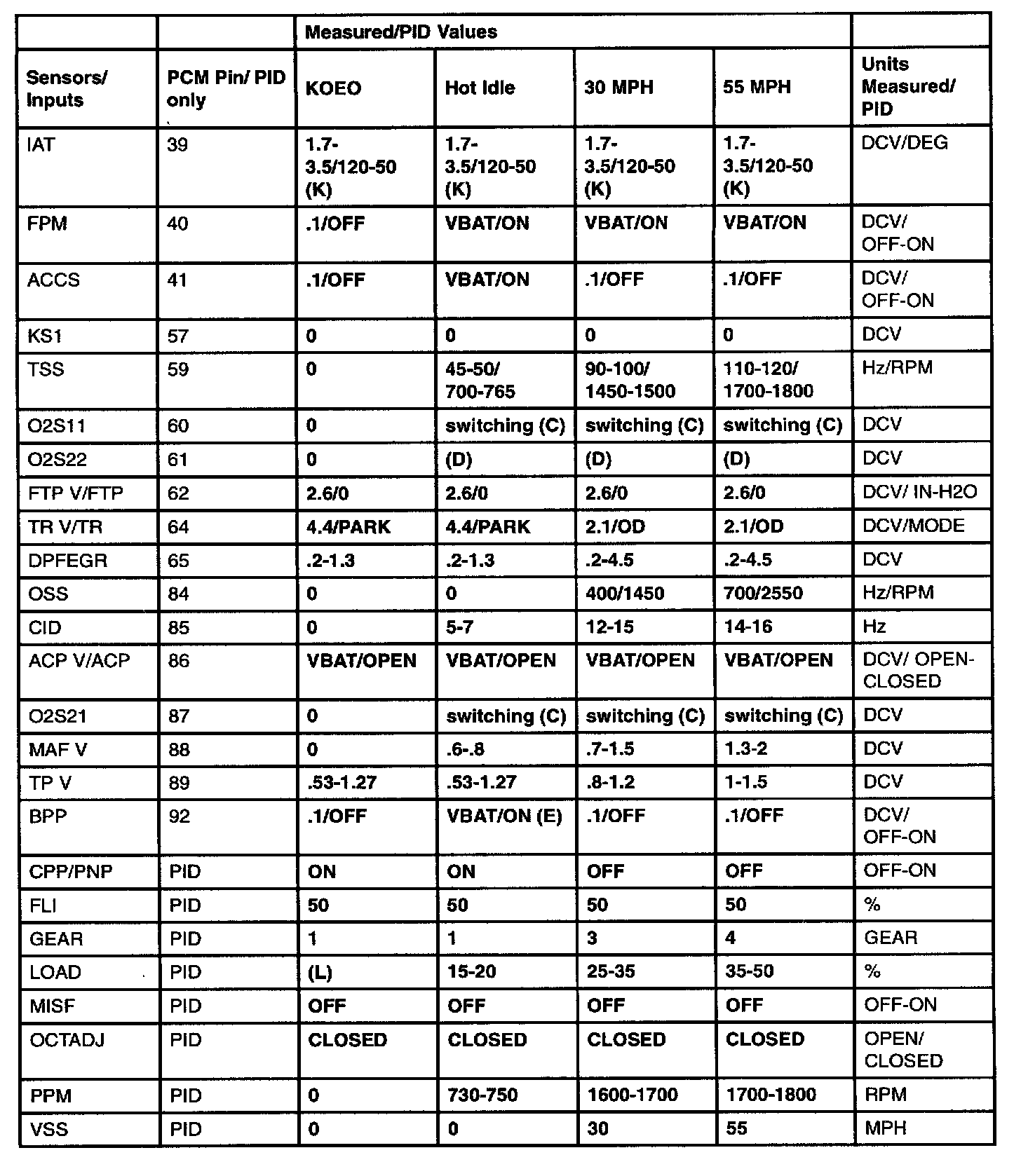GENERIC OBD II PID VALUES: