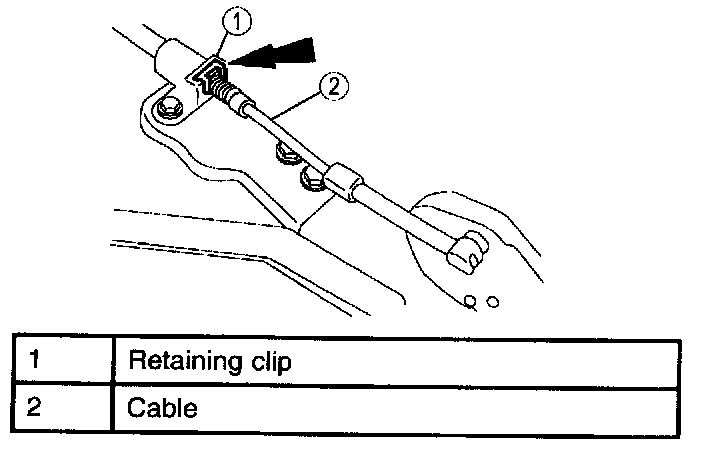 CRUISE CONTROL ACTUATOR CABLE ADJUSTMENT1. Remove retaining clip from cable at accelerator cable bracket.