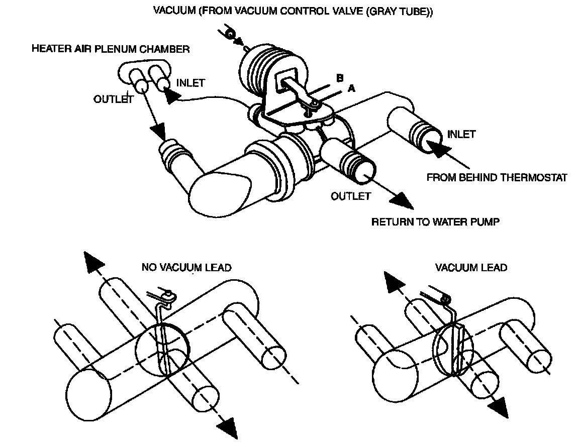 - If vacuum at port A appears in MAX A/C mode but rod position is not correct, replace the water control valve.