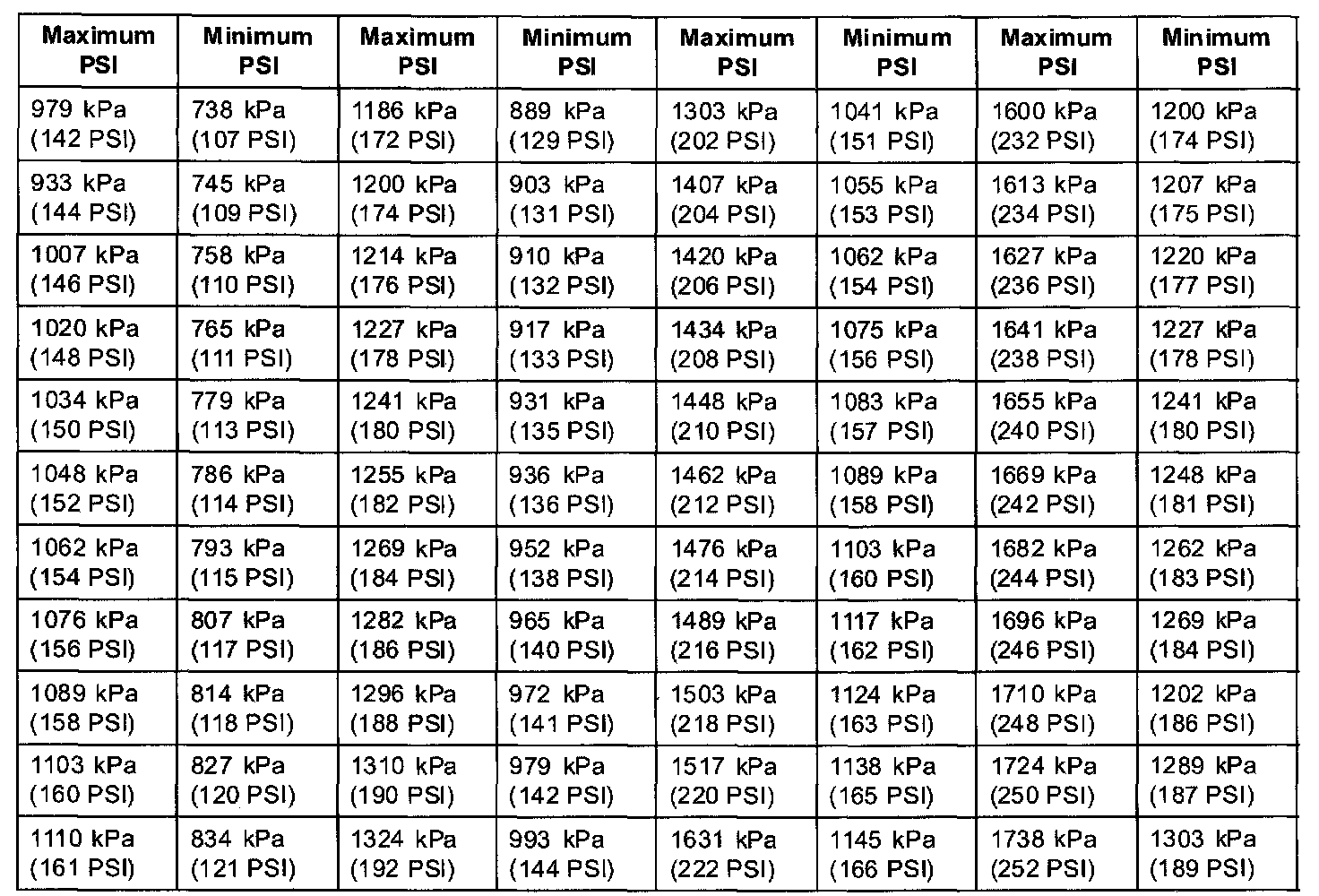 Compressor Pressure Limit Chart