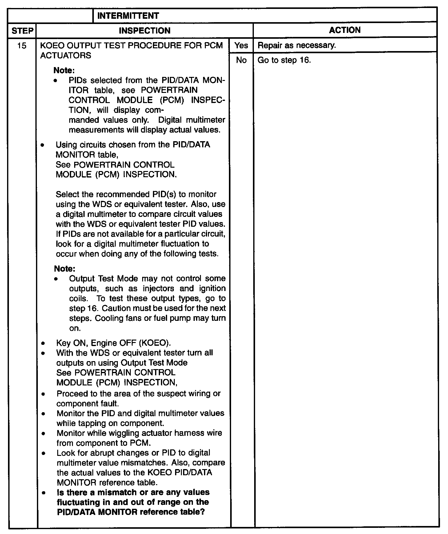 GENERAL PINPOINT TEST 4: INTERMITTENT