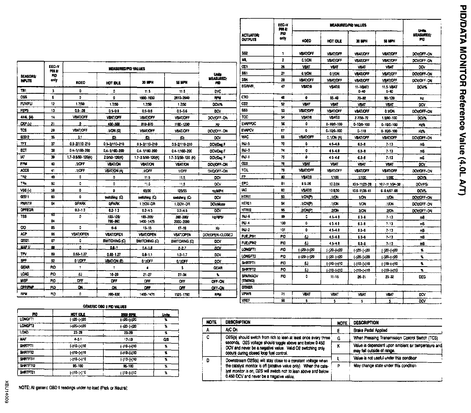 PID/Data Monitor Reference Value (4.0L A/T):