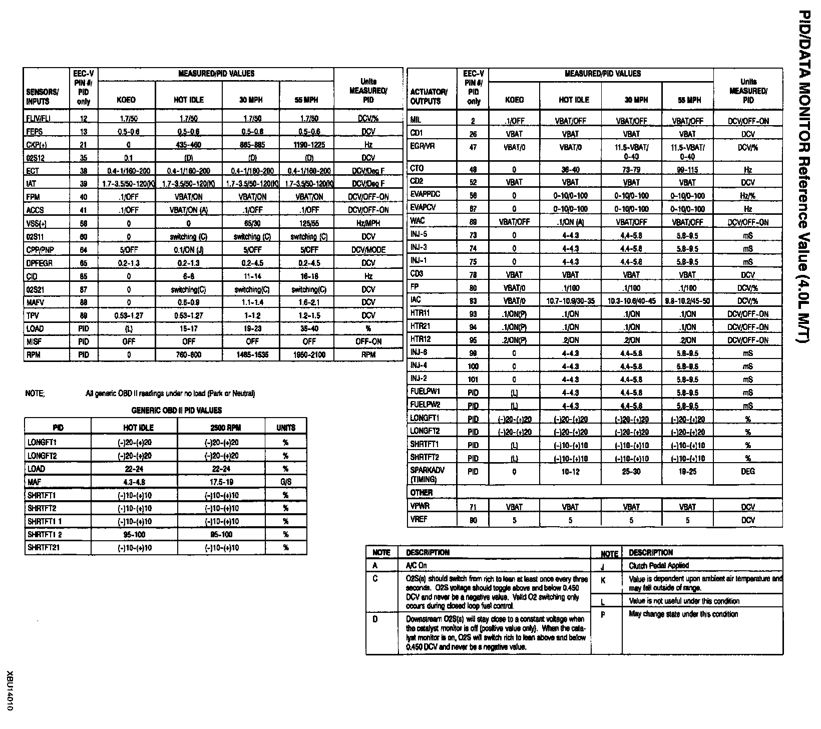 PID/Data Monitor Reference Value (4.0L M/T):