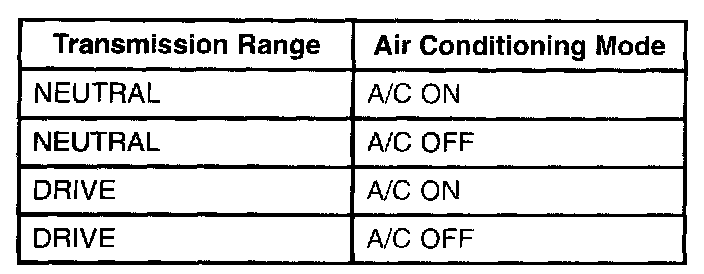 Once keep Alive RAM has been reset, the engine must idle for 15 minutes (actual time varies between strategies) to learn new idle air trim values. Idle quality will improve as the strategy adapts. Adaptation occurs in four separate modes. The modes are shown in the table.