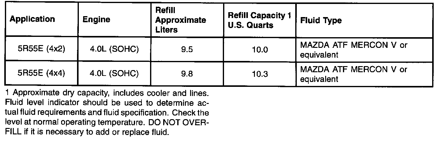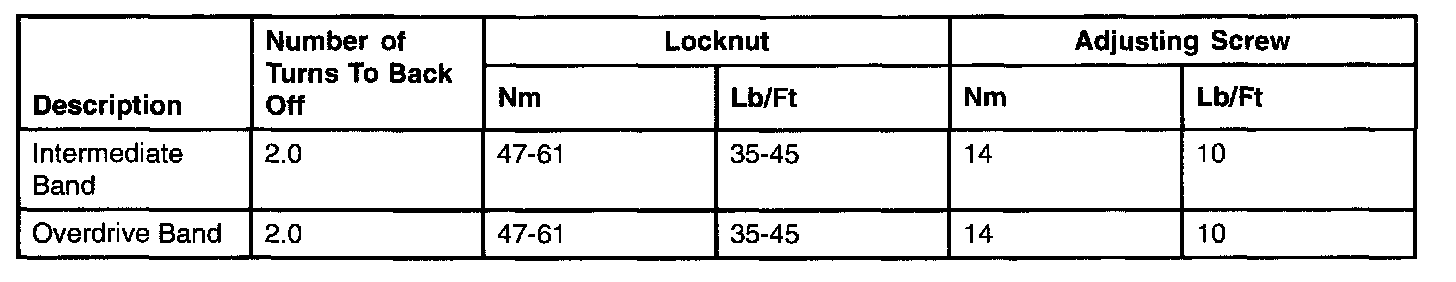 Band Adjustment And Torque Chart (5R44E and 5R55E)