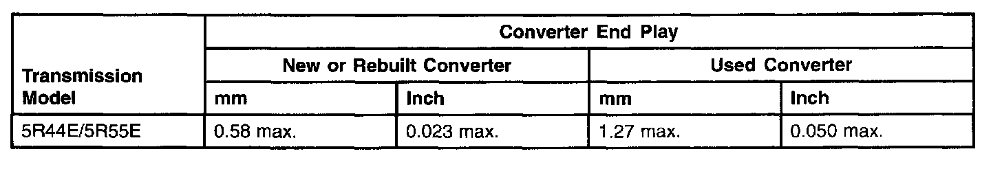 Torque Converter End Play Specifications (5R44E and 5R55E)