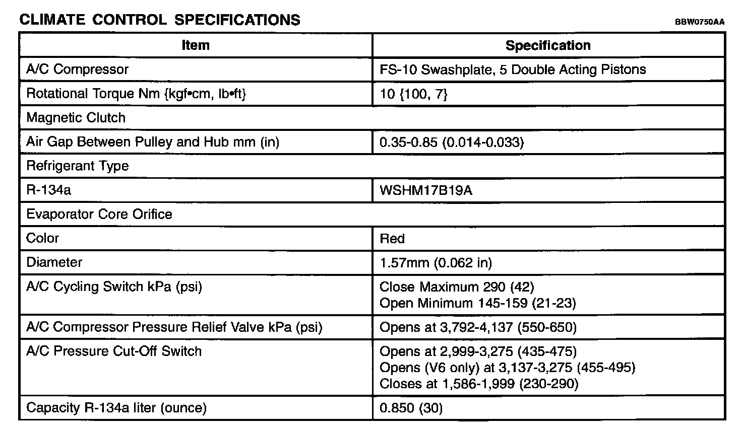 Climate Control Specifications: