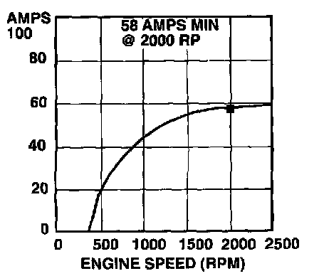 6. With the engine running at 2,000 rpm, adjust the tester load bank to determine the output of the generator. Generator output should be at least 58 amps.