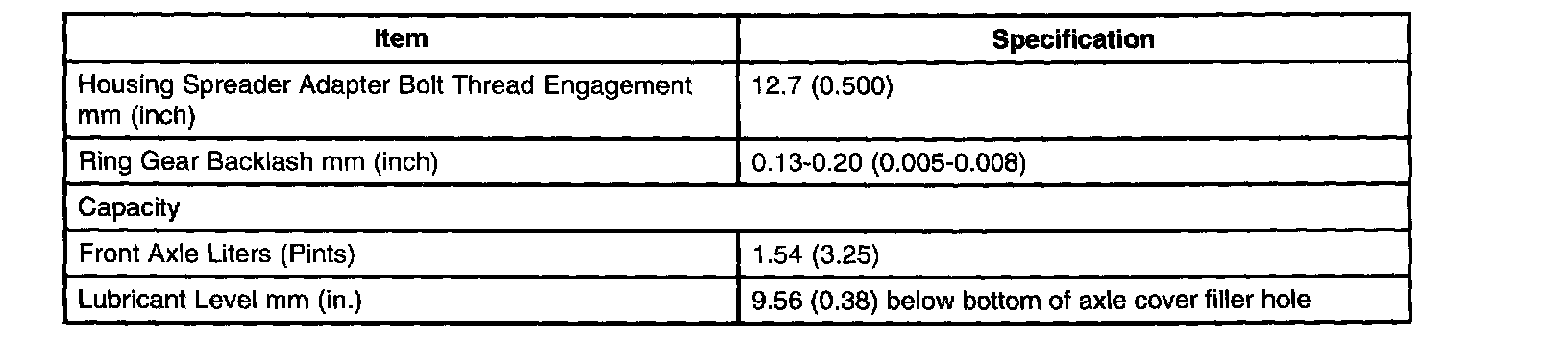 Front Differential General Specifications