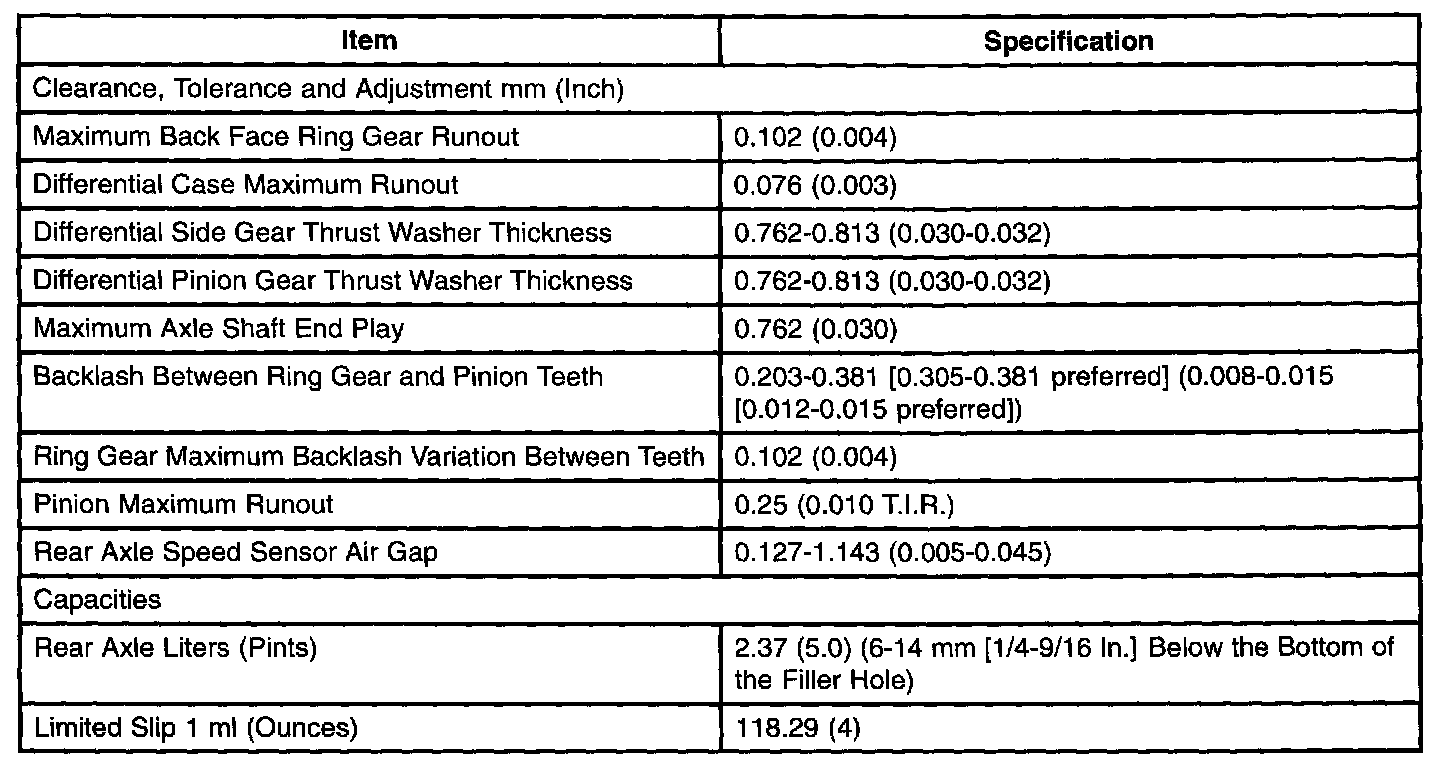 Rear Differential General Specifications