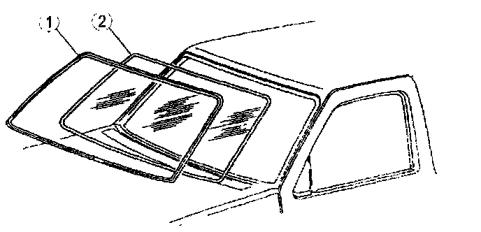 6. Remove molding (1) and windshield 2. Refer to Windshield Removal Note.