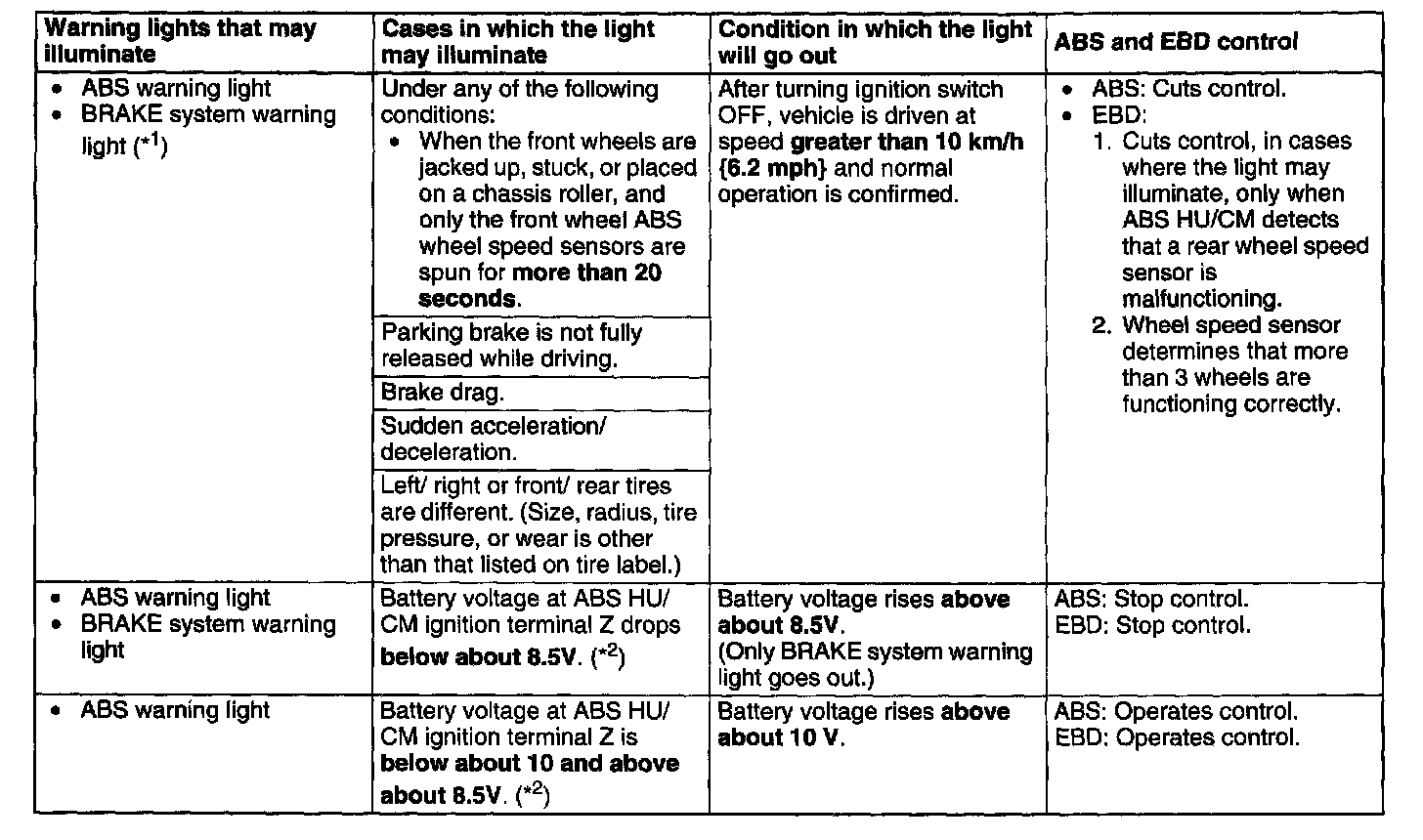 *1: In cases where the light may illuminate, only when ABS HU/CM detects that a rear wheel's speed sensor is malfunctioning.