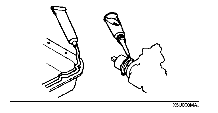 ^ Sealant and gaskets, or both, should be applied to specified locations. When sealant is applied, parts should be installed before sealant hardens to prevent leakage.