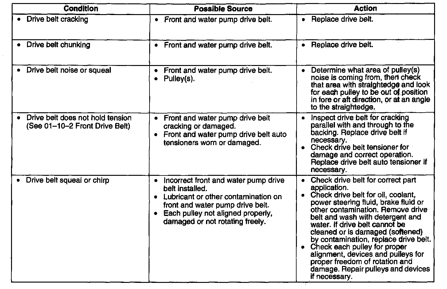 DRIVE BELT INSPECTIONSymptom Chart