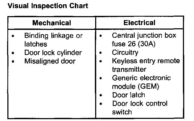 2. Visually inspect for obvious signs of mechanical and electrical damage. Refer to the chart: