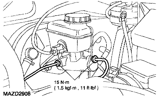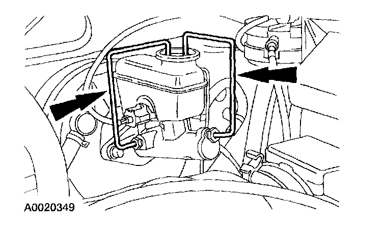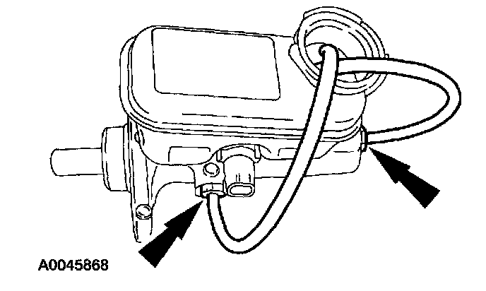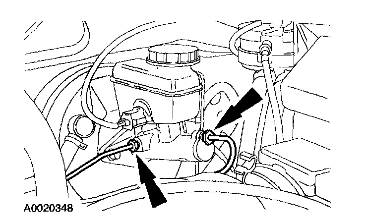 1. Disconnect the brake outlet lines from the brake master cylinder and cap the lines.