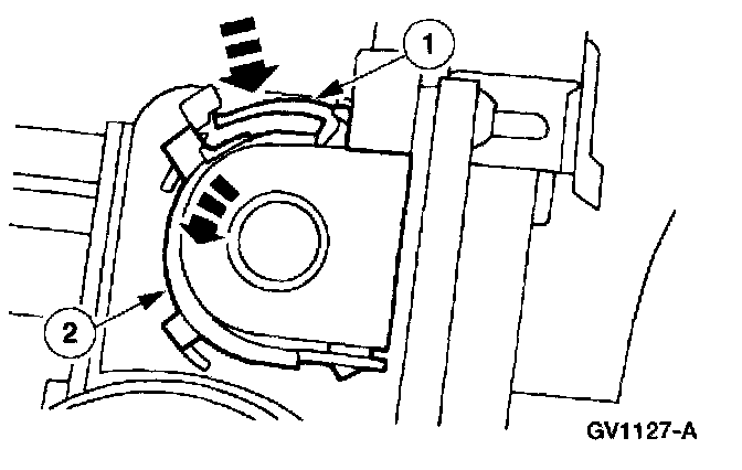 1. Depress the cruise control cable cap retaining tab.