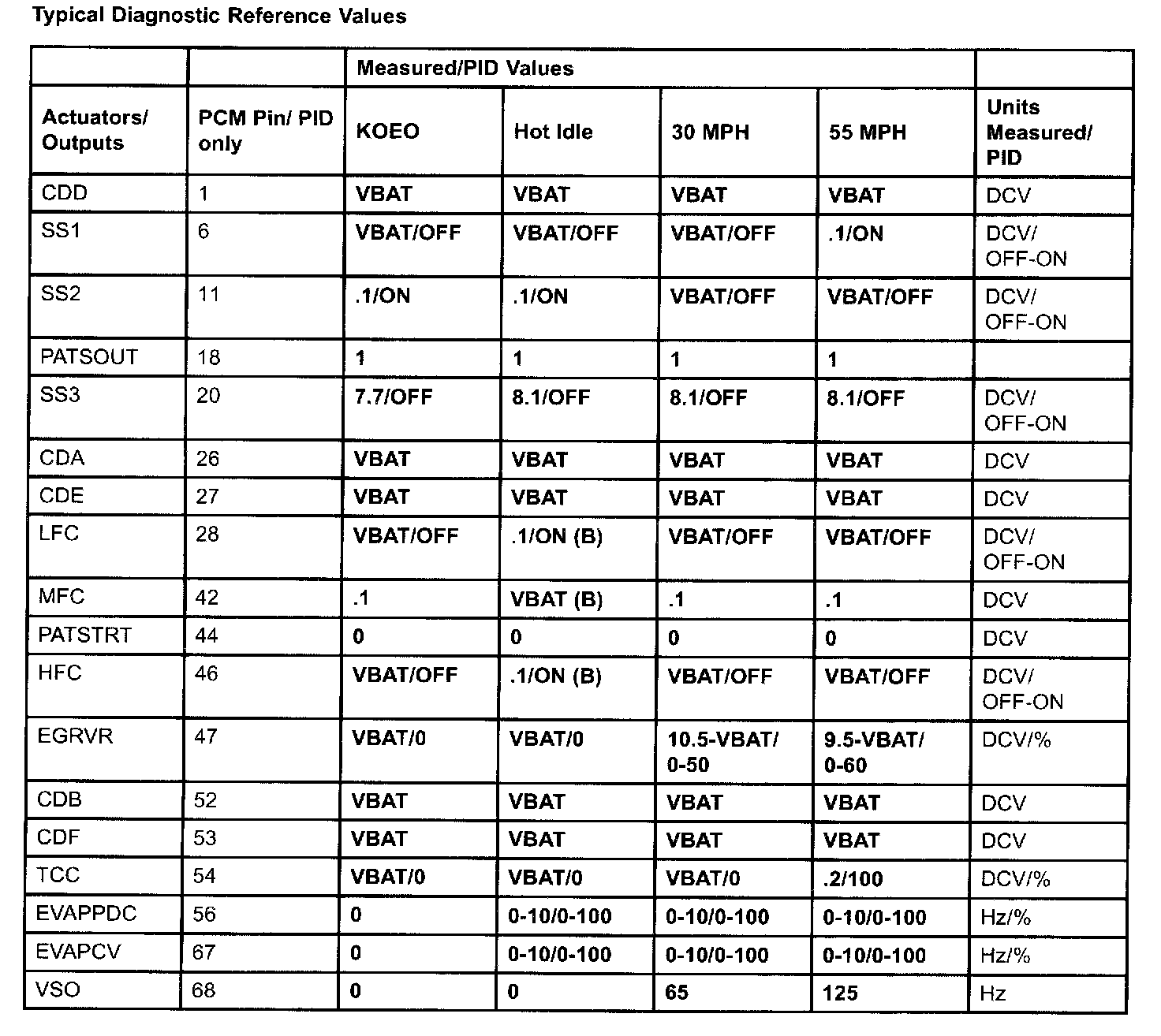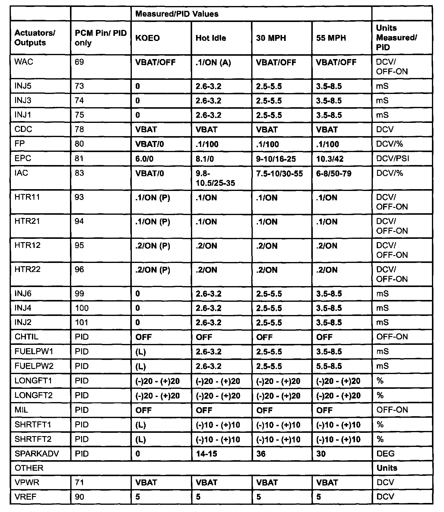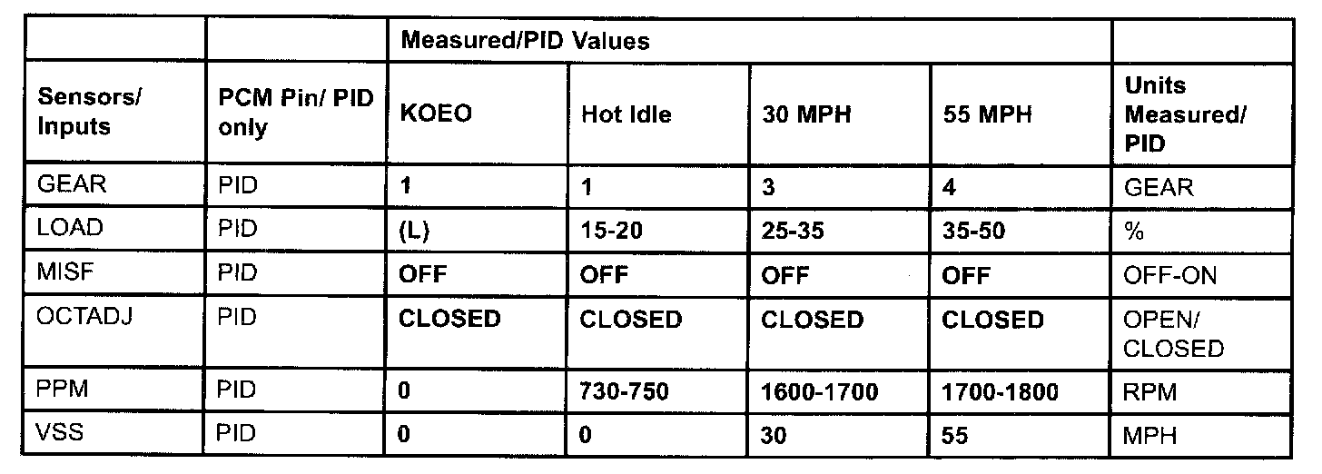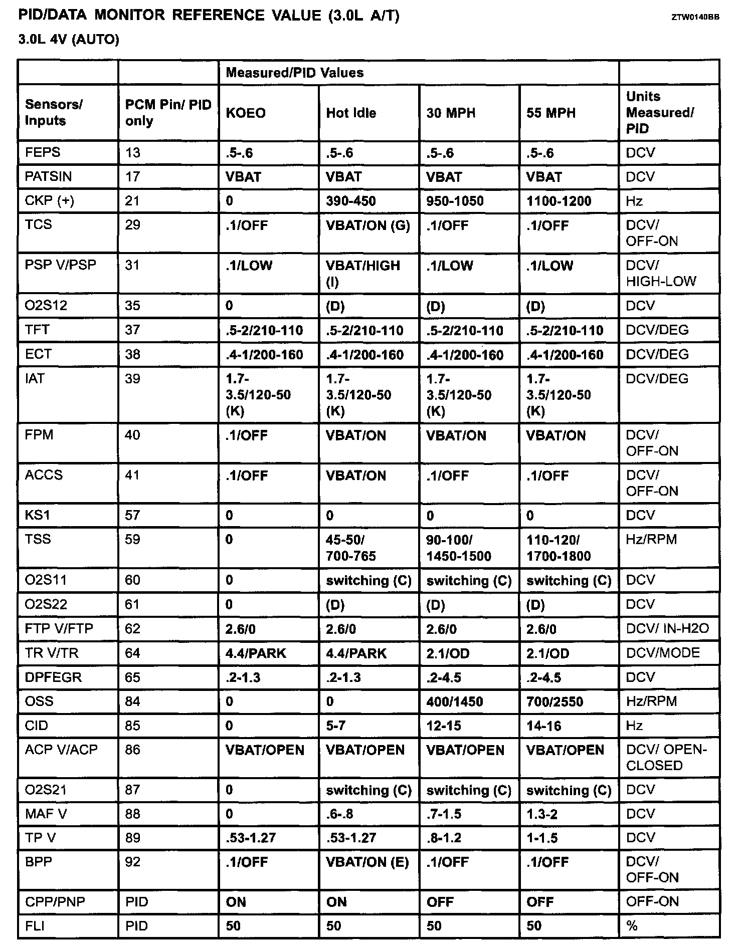 PID/Data Monitor Reference Value (3.0L A/T):